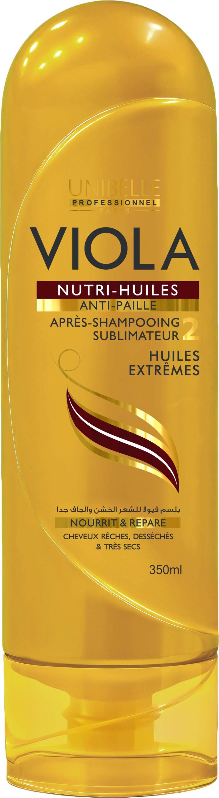 Le après – shampooing clarifiant VIOLA donne une hydratation et assouplit pour les cheveux secs et protège les pointes